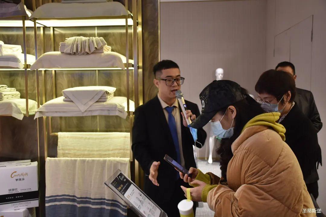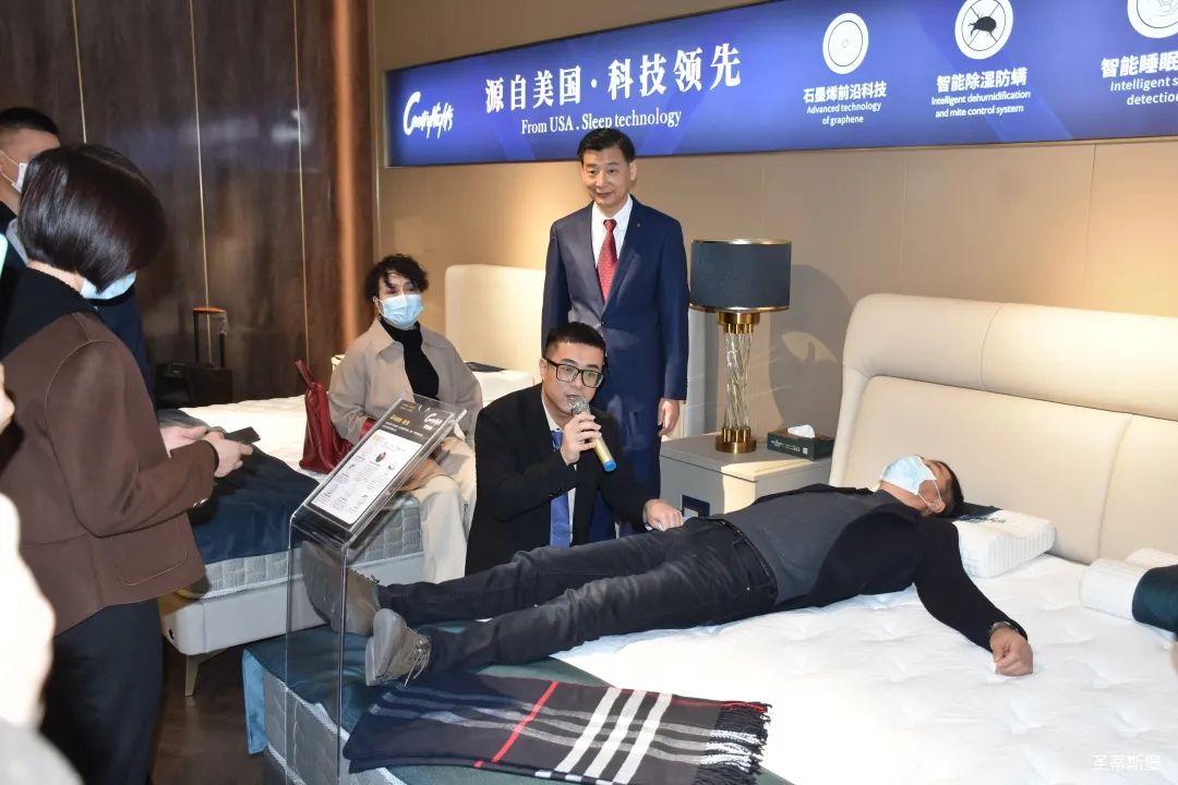 12月25日上午,按照發布會流程安排,參與發布會的嘉賓先到名家居世博園【夢凱莎】旗艦店進行了參觀。上午9:45分,經銷商嘉賓們陸續來到名家居世博園2樓——美國夢凱莎的展廳里,PA視訊集團營銷總經理陳玉偉先生帶領夢凱莎楊講師團隊為嘉賓們講解【夢凱莎床墊】新品系列的10種睡感體驗及材質工藝,讓嘉賓們從工藝特點,科技睡感上,實時體驗【夢凱莎床墊】的獨有特色。“一張好床墊,睡出好健康”,“夢凱莎”品牌以其卓爾不群的產品優勢和為專為國人打造健康舒適睡眠的品牌理念贏得了在場經銷商的一致好評。